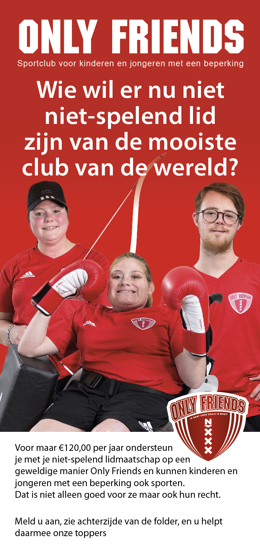De opbrengst zal worden gebruikt om de sportactiviteiten en faciliteiten van Only Friends mogelijk te blijven maken.